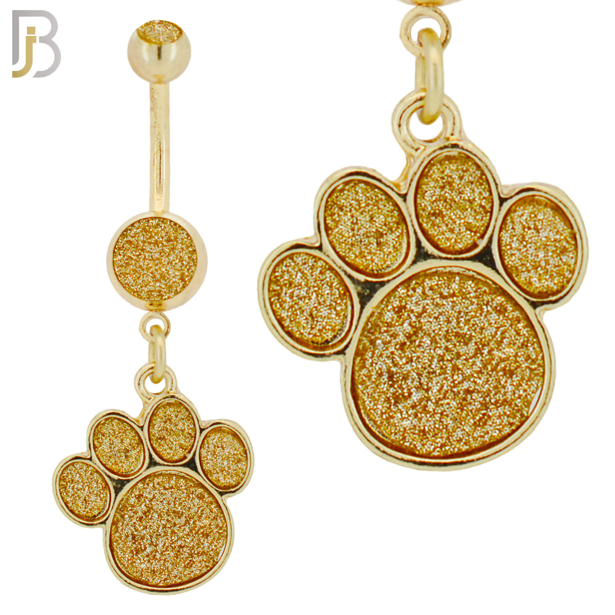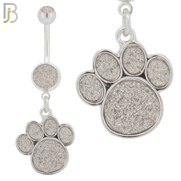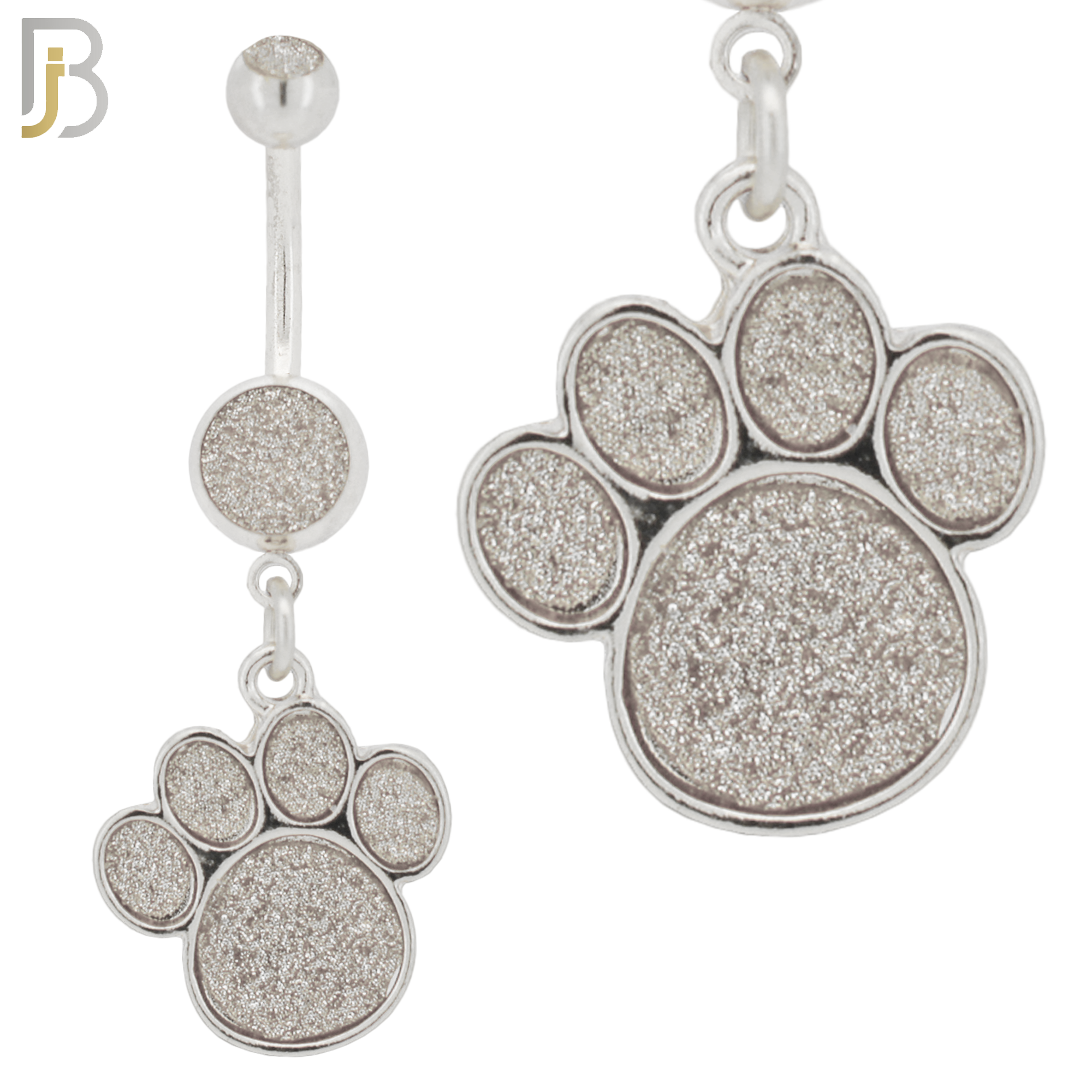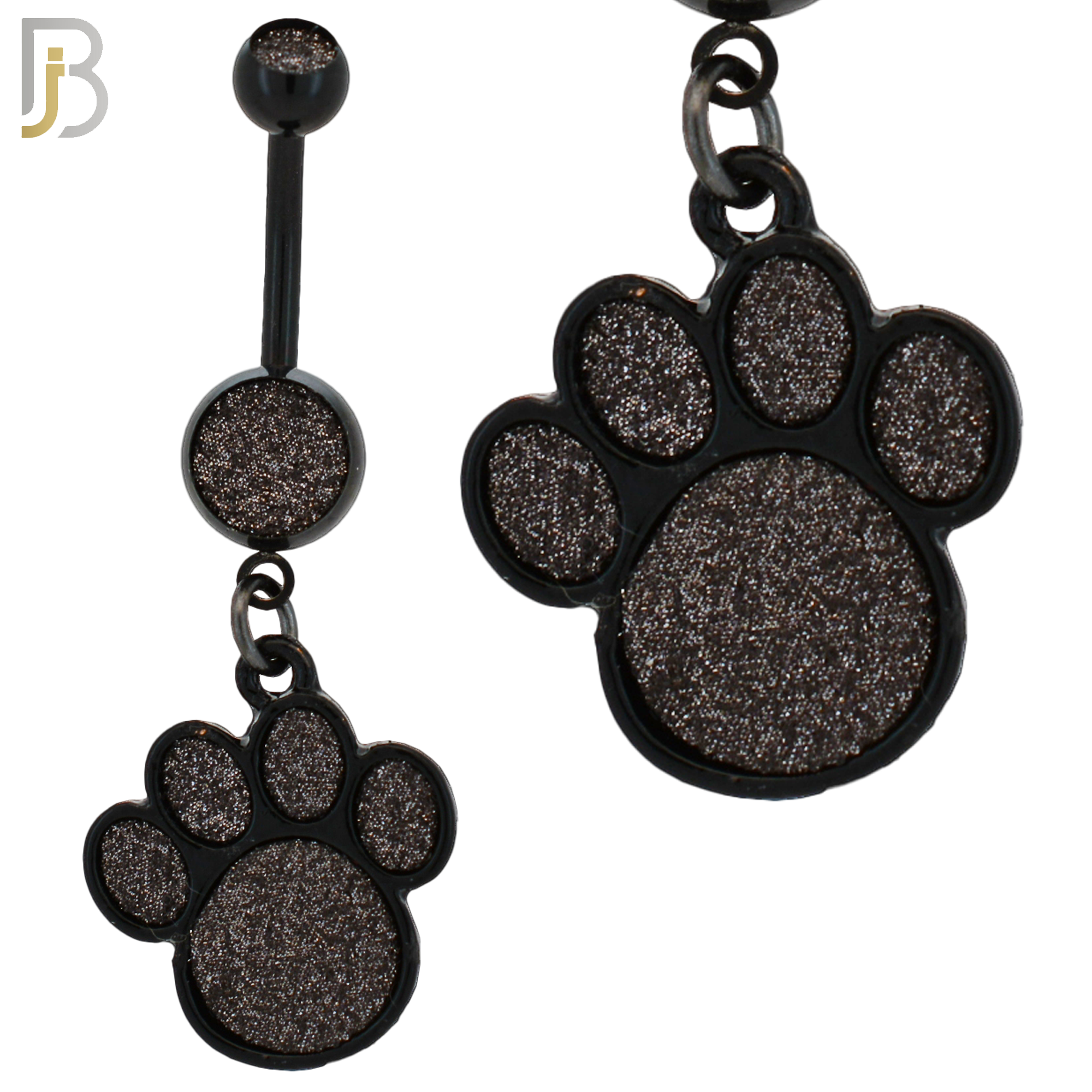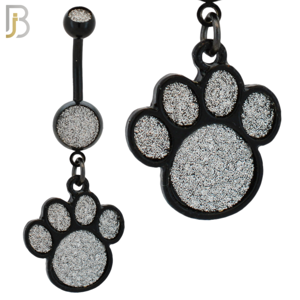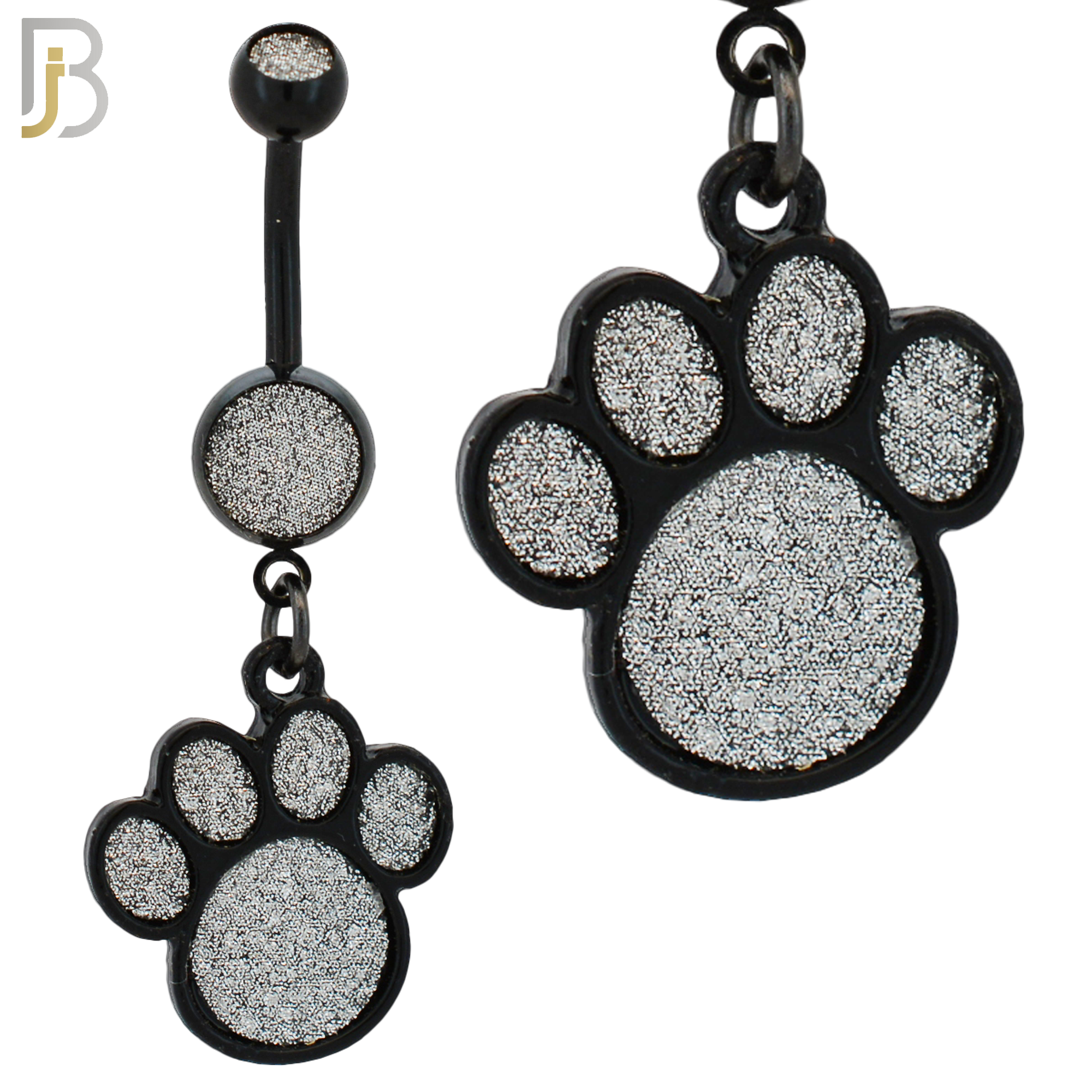 316L Stainless Steel Dangling Dog Paw Print Sandpaper Design Belly Ring with 4mm Screw Ball
