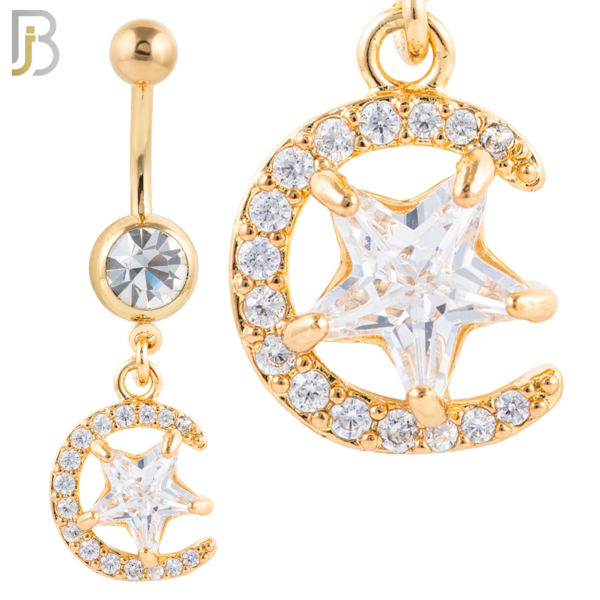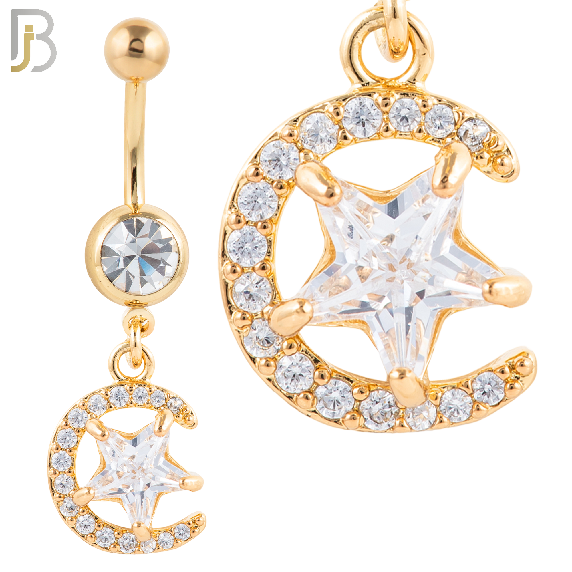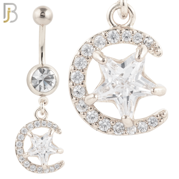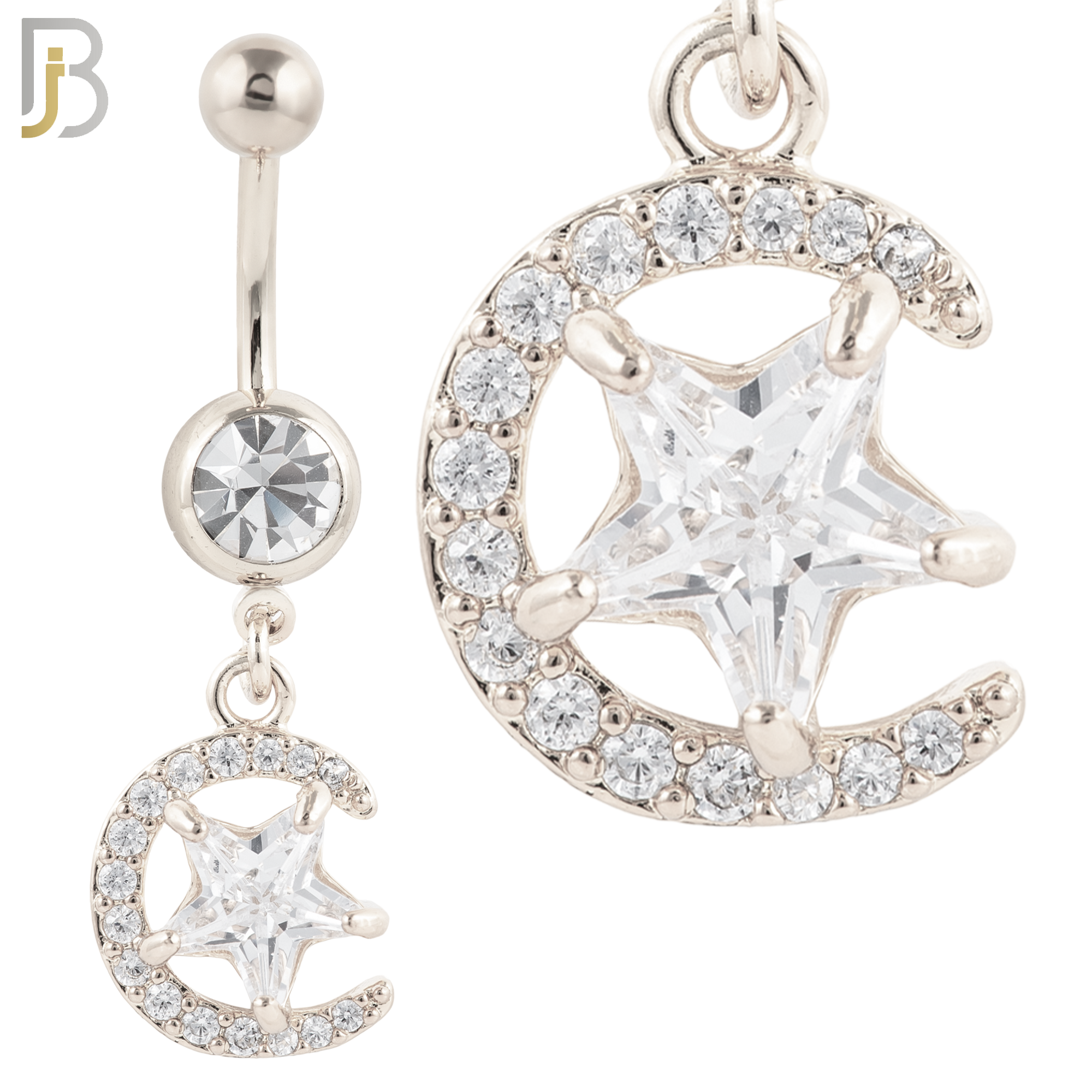 316L Stainless Steel Dangling Crescent Moon and Star Zircon Design Belly Ring with 4mm Screw Ball