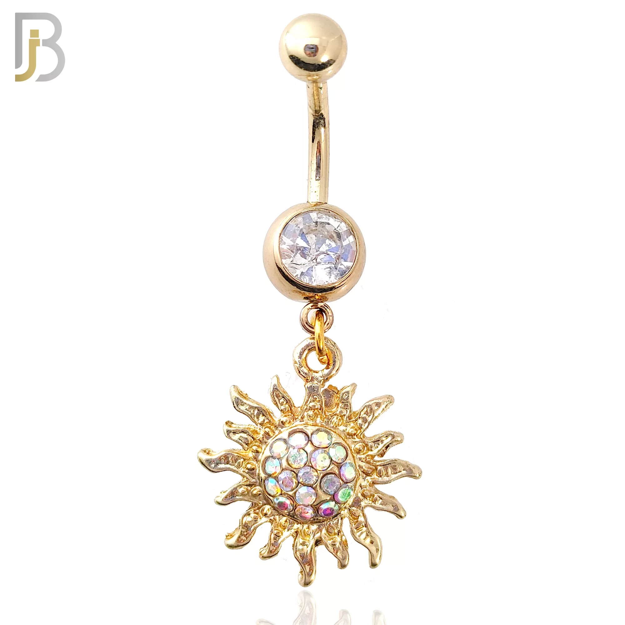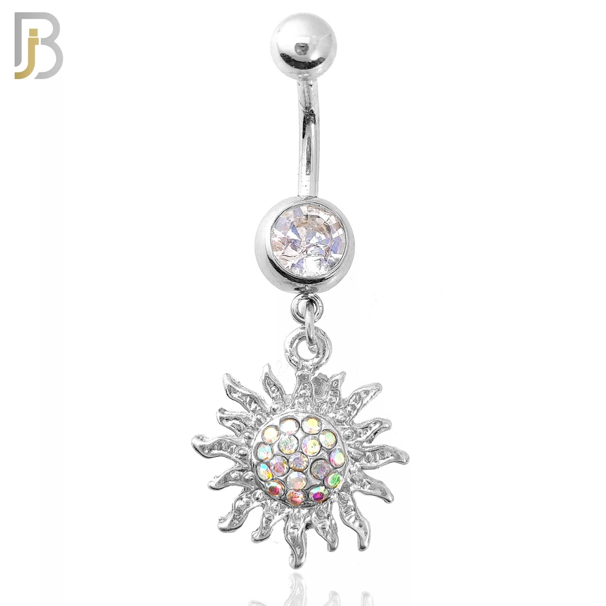 316L Stainless Steel Dangling Sun with Zircon Design Belly Ring with 4mm Screw Ball