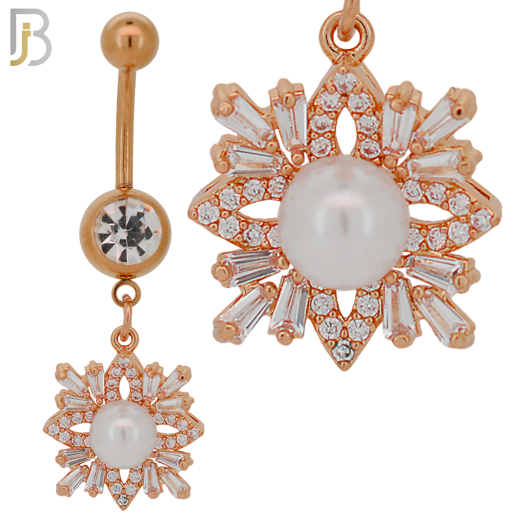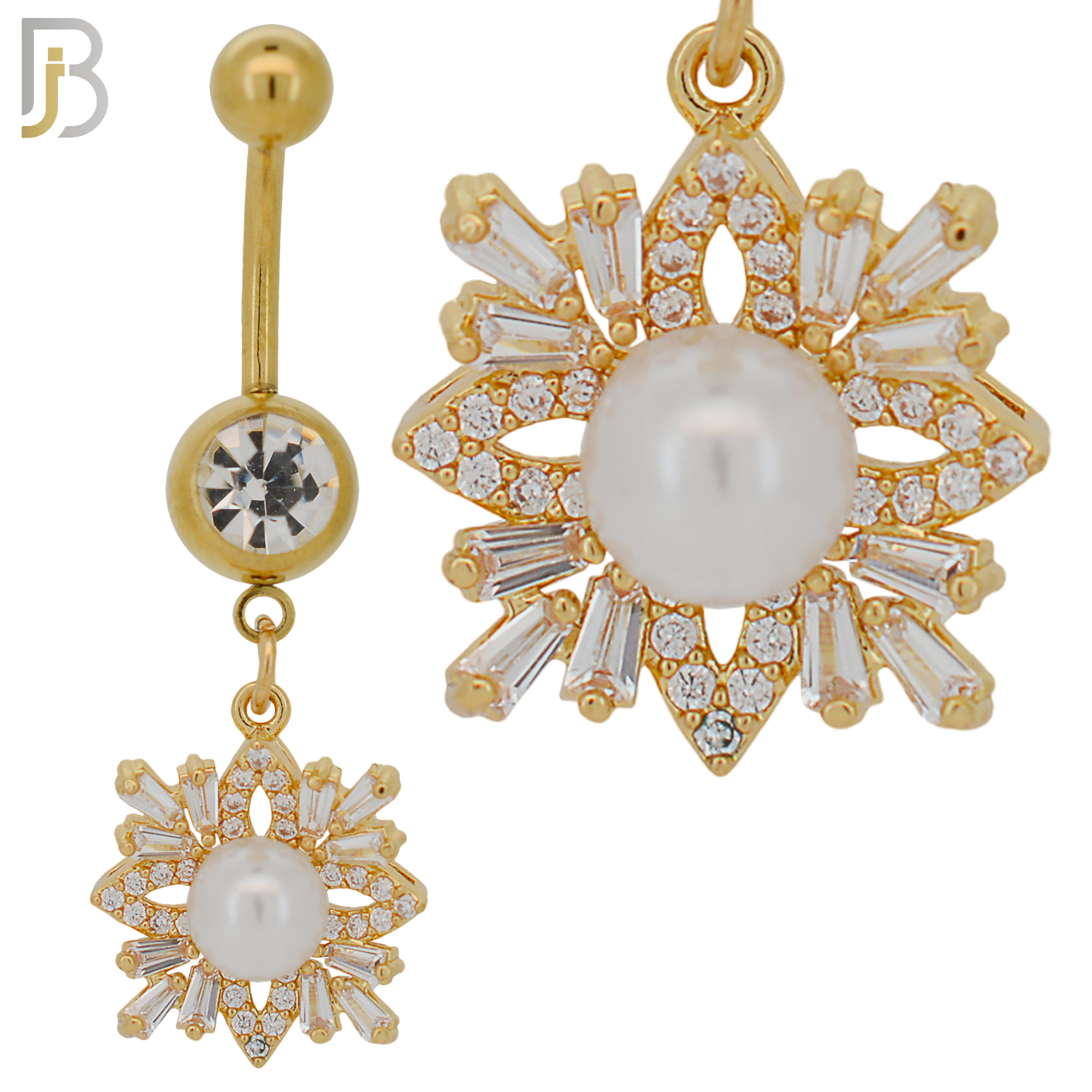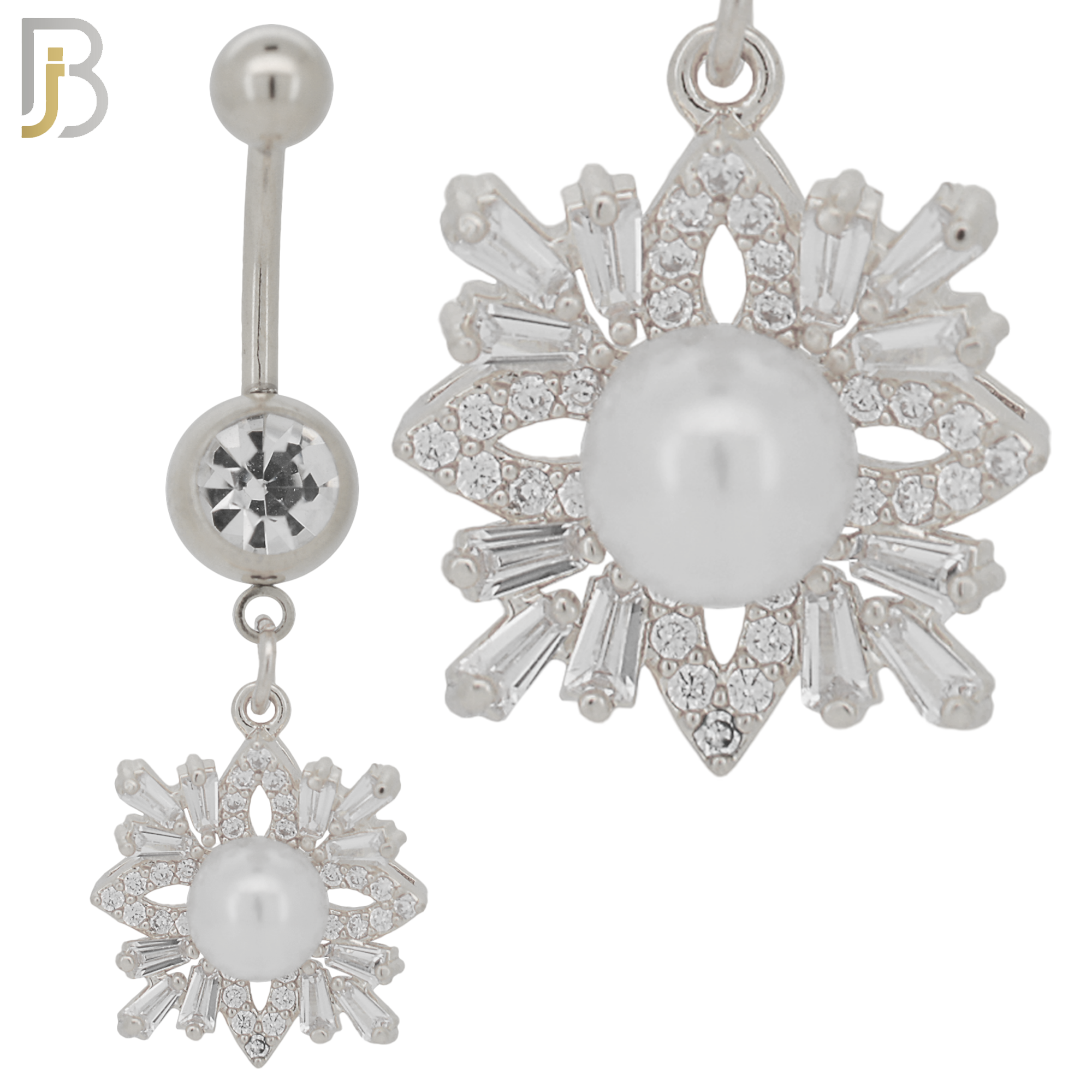316L Stainless Steel Dangling Snowflakes with Pearl Design Belly Ring with 5mm Screw Ball