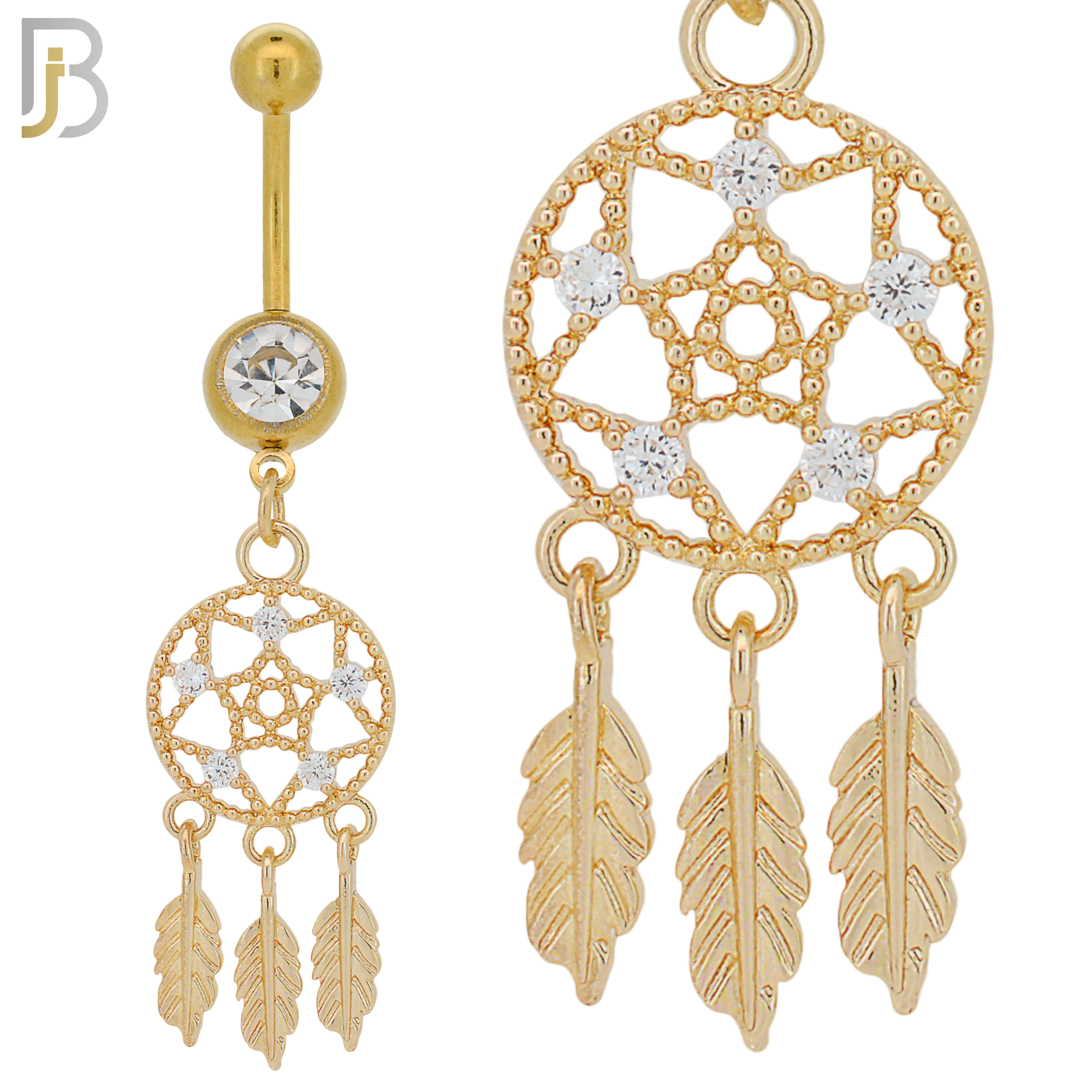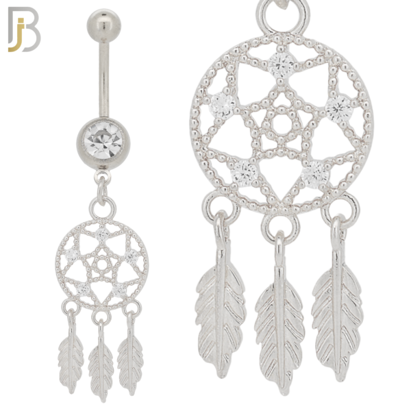 316L Stainless Steel Dangling Dream Catcher with Zircon Design Belly Ring with 5mm Screw Ball