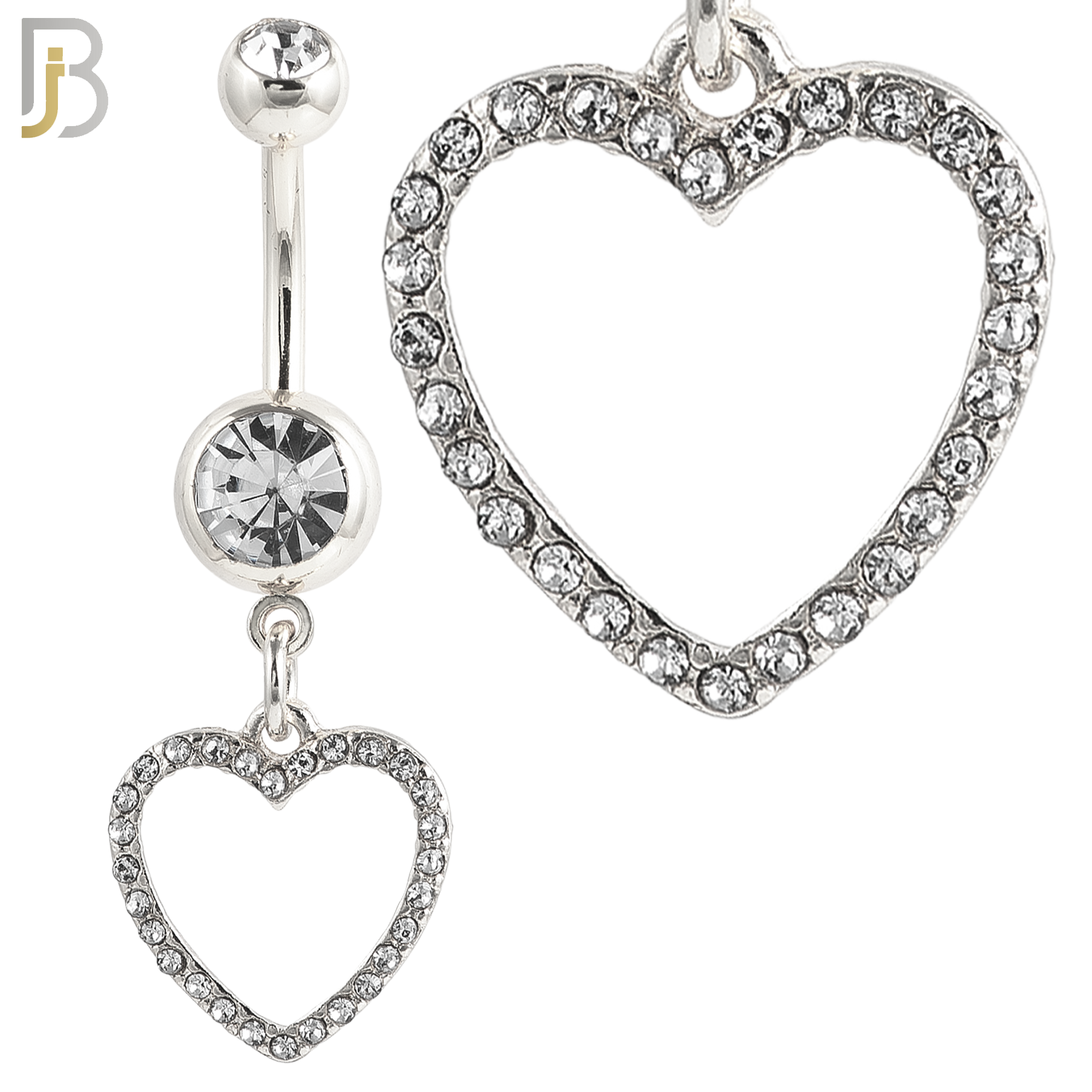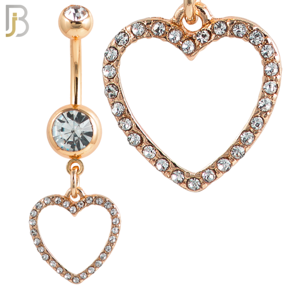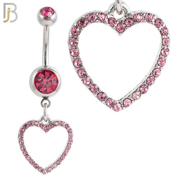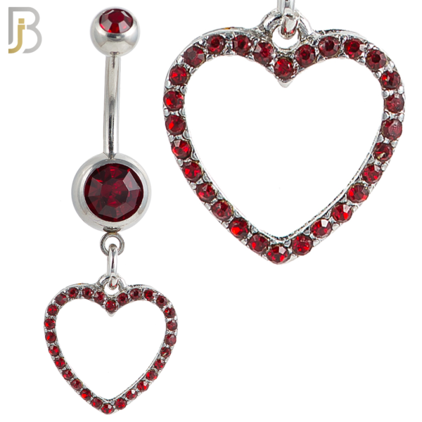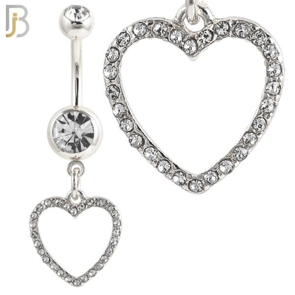 N026 – 316L Stainless Steel Dangling Hollow Heart with Zircon Design Belly Ring with 4mm Screw Ball