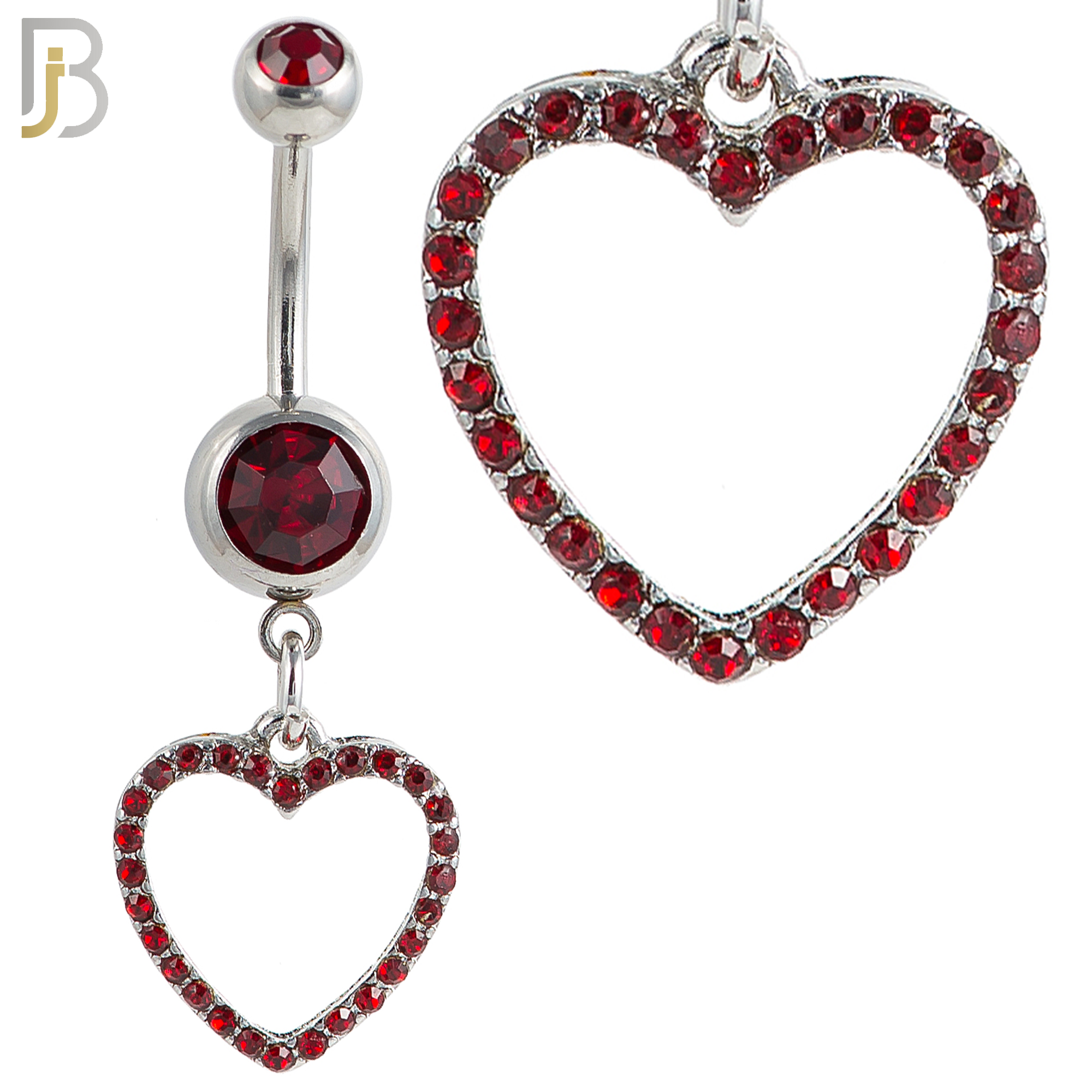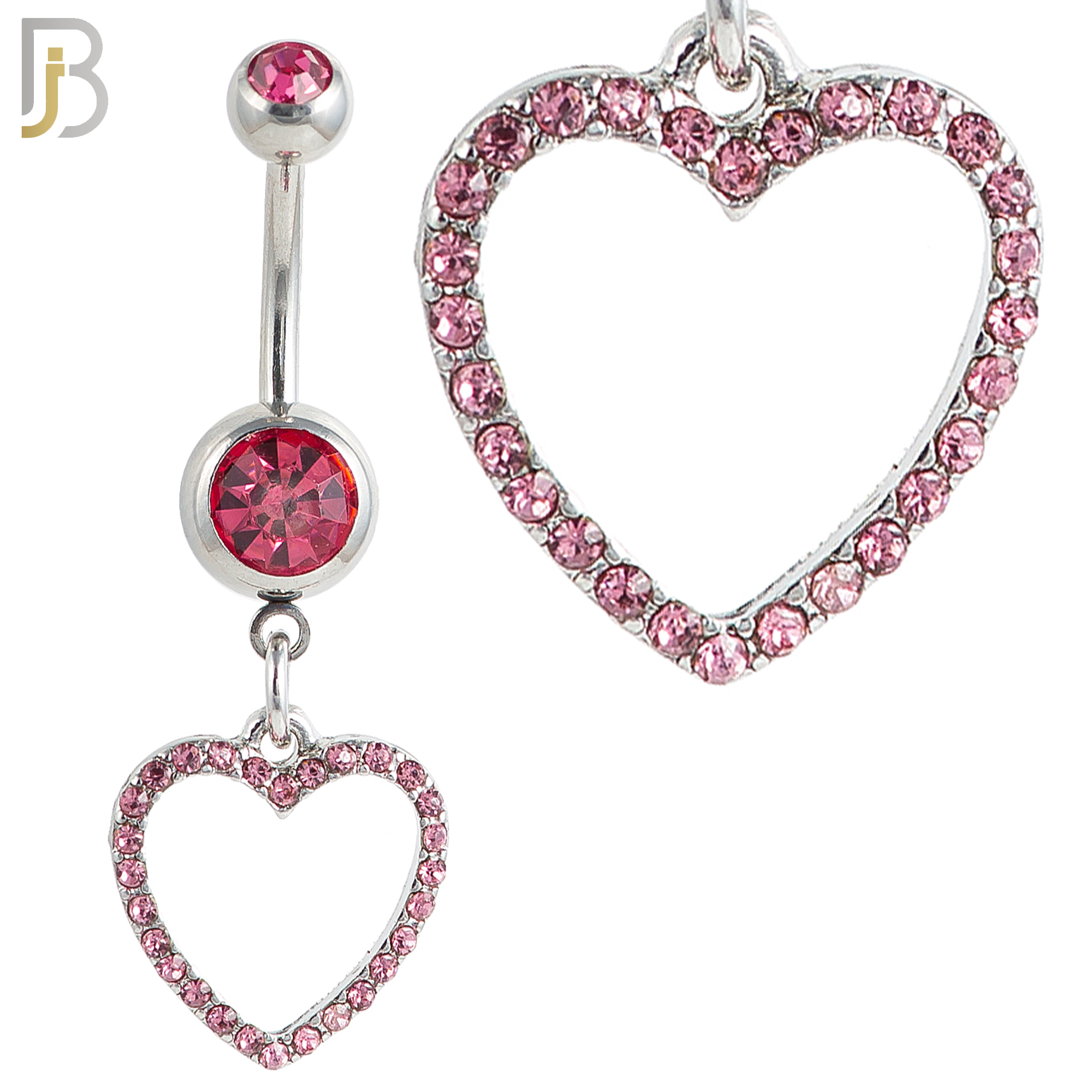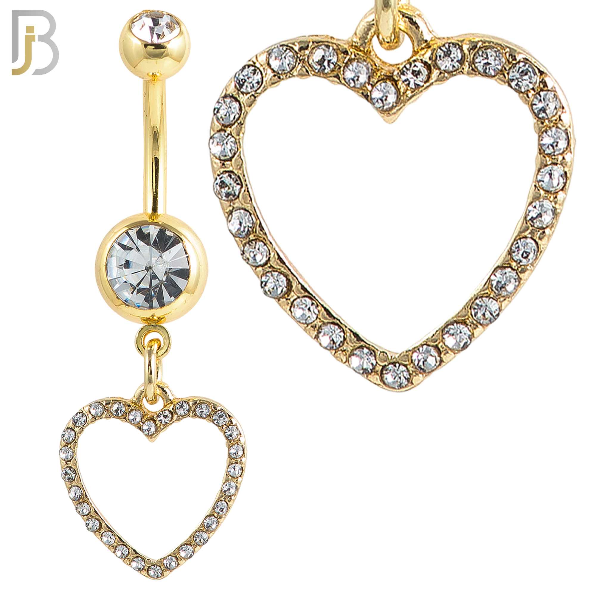 N026 – 316L Stainless Steel Dangling Hollow Heart with Zircon Design Belly Ring with 4mm Screw Ball