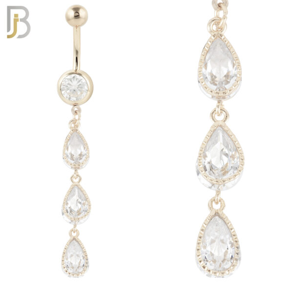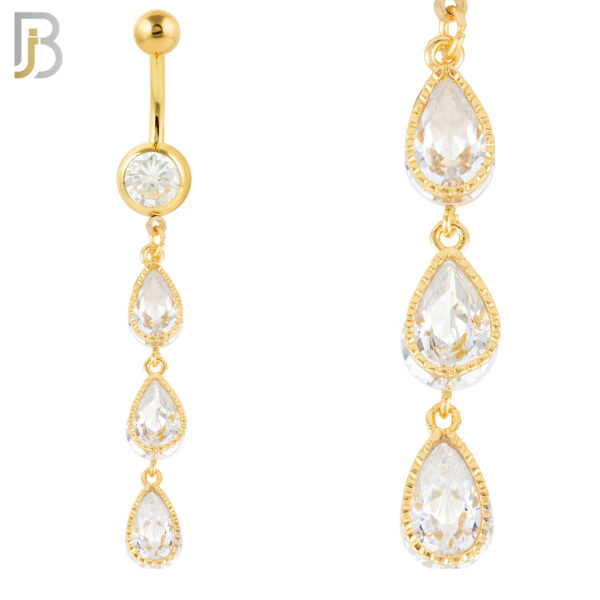 316L Stainless Steel Dangling Triple Teardrop Zircon Design Belly Ring with 4mm Screw Ball