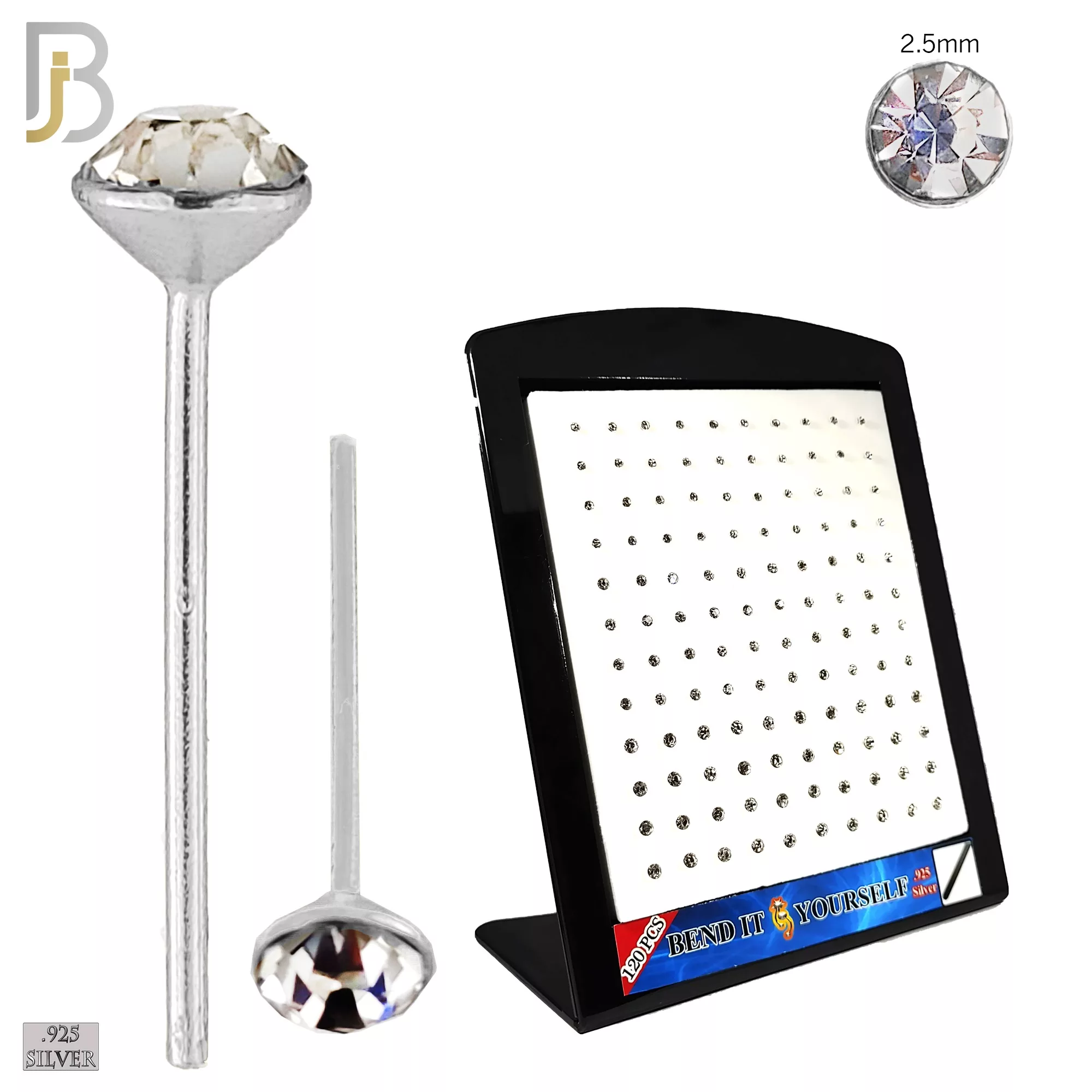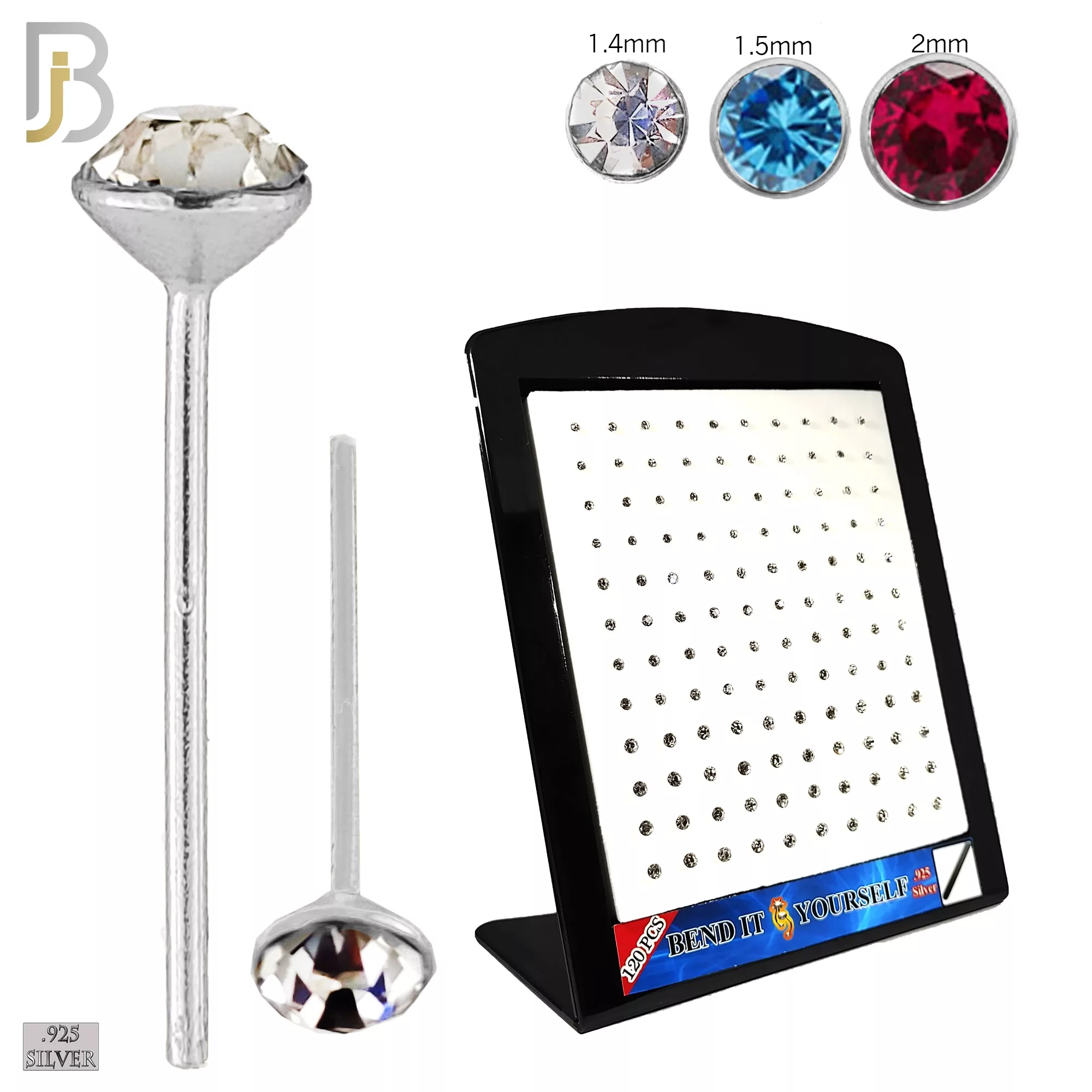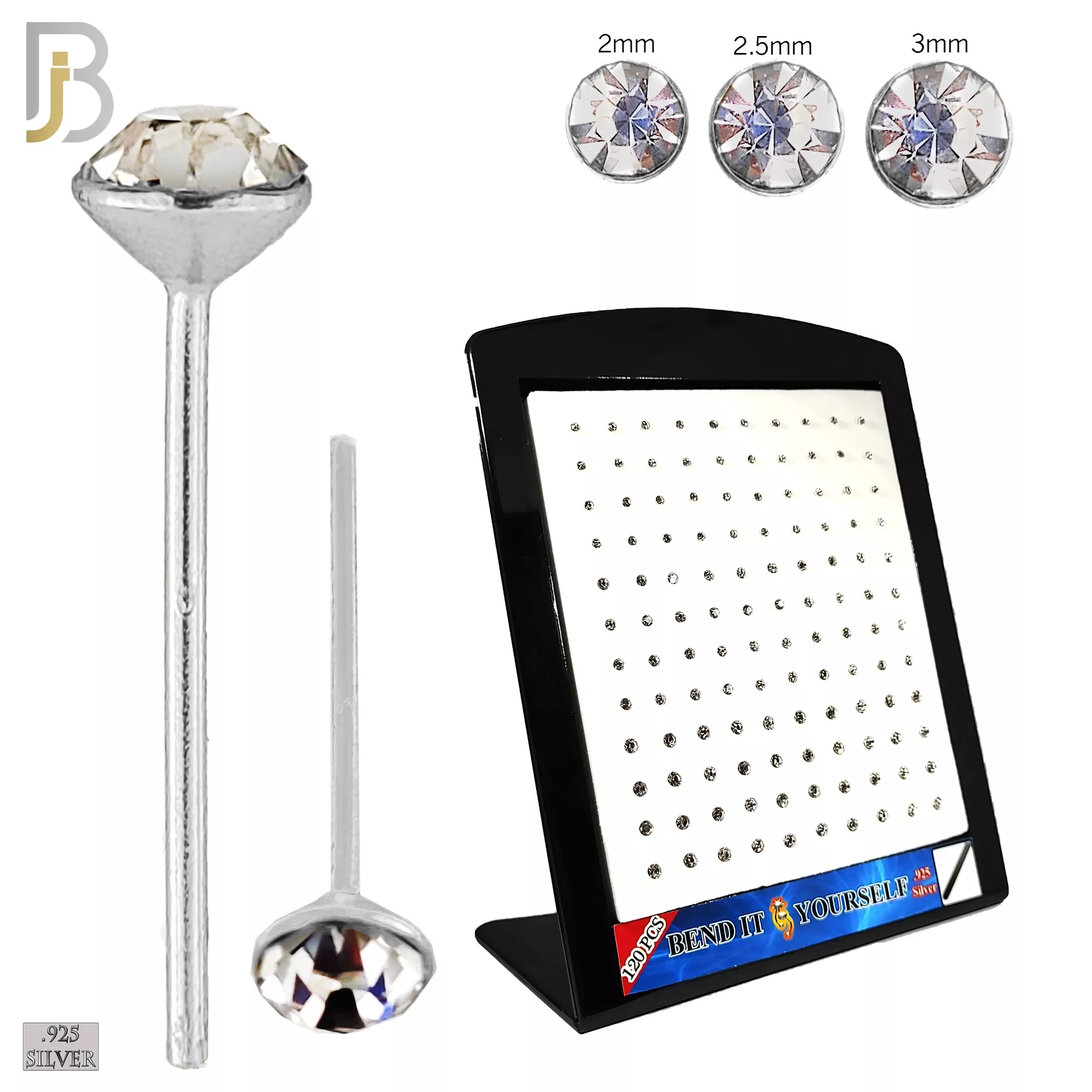 .925 Sterling Silver Nose Stud “Bend it Yourself” Press Fit Round Zircon Bezel Setting