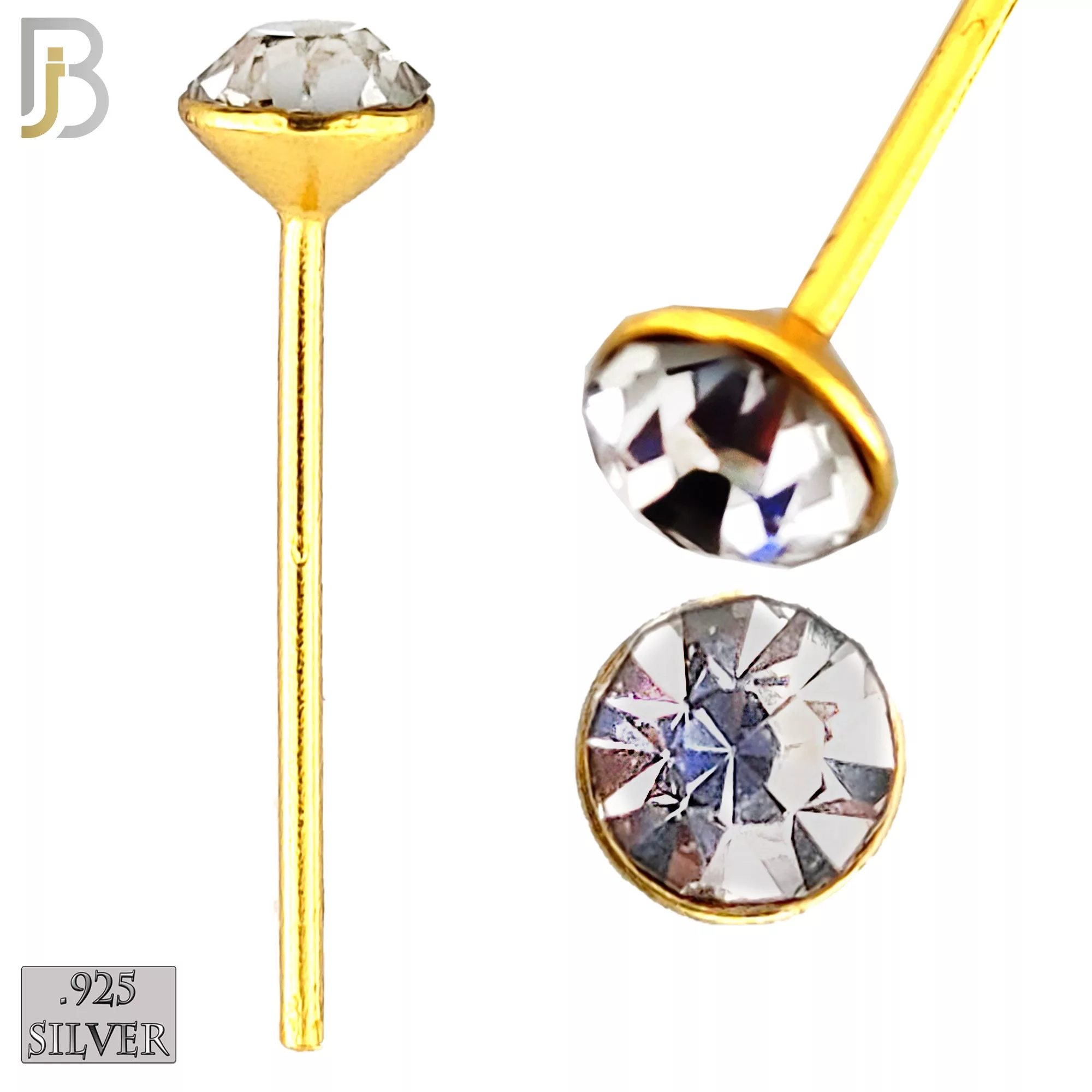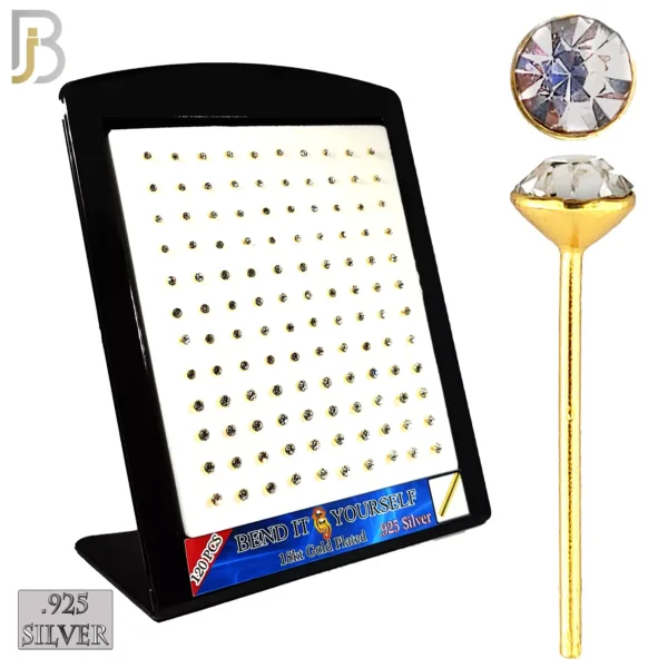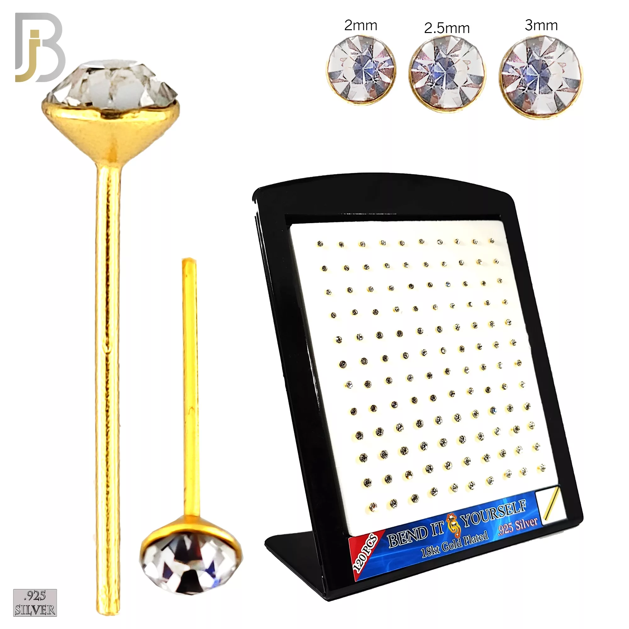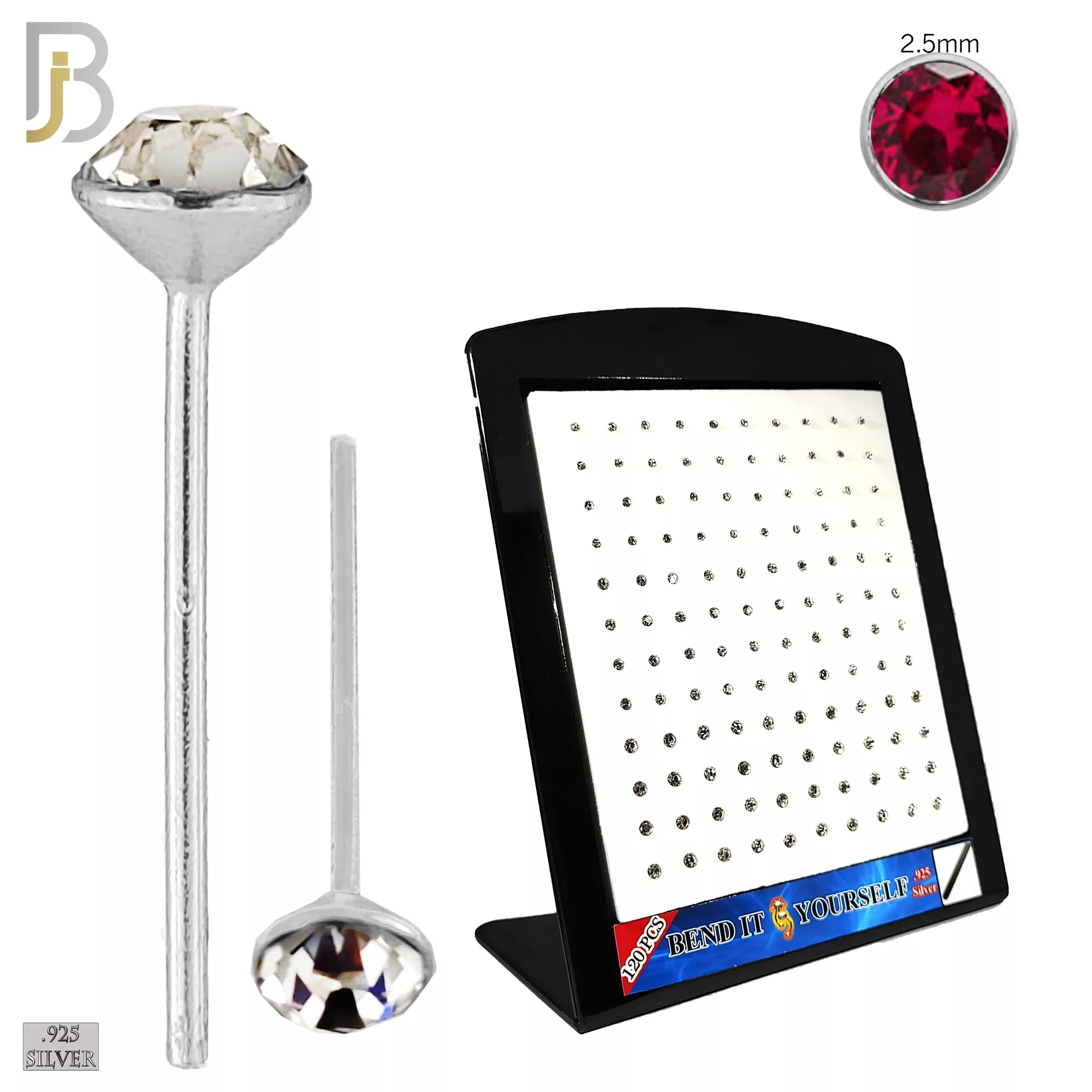.925 Sterling Silver Nose Stud “Bend it Yourself” Press Fit Round Zircon Bezel Setting