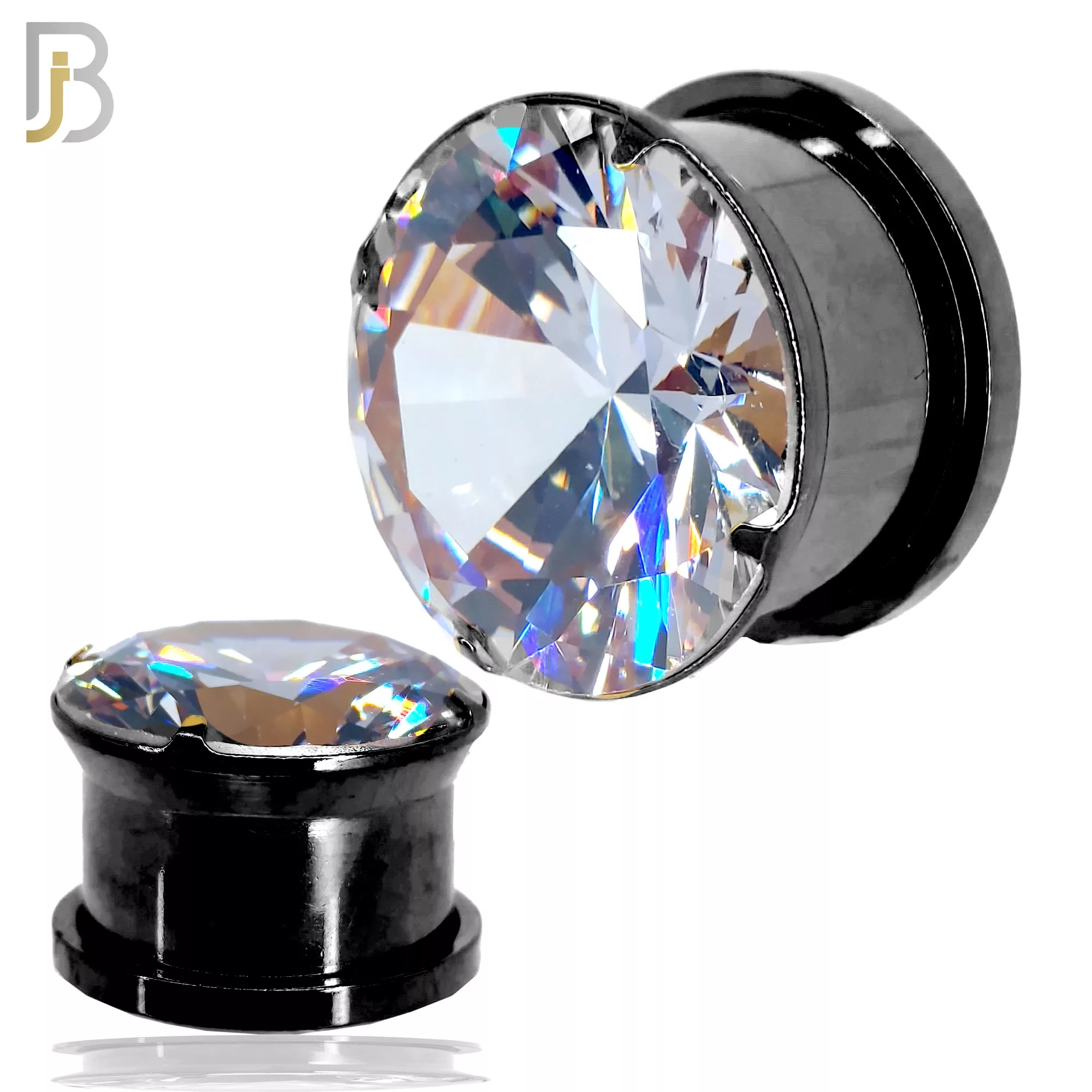 Black Plated Surgical Steel Clear Round Prong Setting Zircon Screw On Plugs
