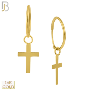 14-ES31 – 14k Solid Gold Hoops Earrings Cross Dangle Design