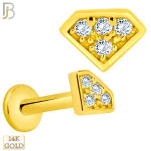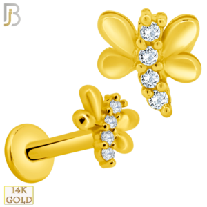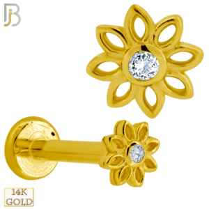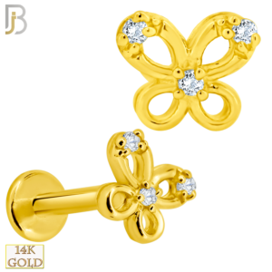 14k gold labret stud is a type of jewelry created specifically for adorning lip or facial piercings. It typically consists of a straight bar with a flat disc or decorative end on one side, and a removable ball or gemstone on the other side. The flat disc rests against the inside of the lip, while the ball or gemstone is visible on the outside, creating a stylish and subtle look.