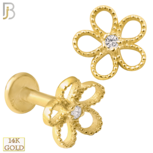 14-LB26 – 14k Yellow Gold Hollow Five Petal Flower with Zircon Labret