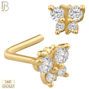 14-NR34L- 14k Solid Gold Butterfly Design with CZ L Shaped Nose Ring