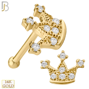 14-NR29 – 14k Solid Gold Nose Bone Crown Design with Zircon