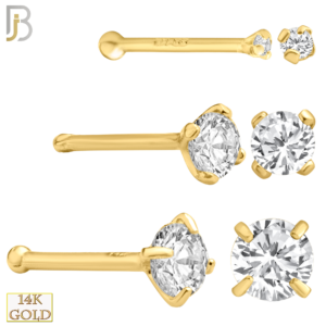 14-NR01CY – 14k Solid Yellow Gold Prong Setting  Round Cubic Zircona Nose Bone