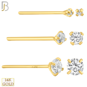 14-NR03CY – 14k Solid Yellow Gold Prong Setting  Round Cubic Zircona Nose Screw, Cork Screw