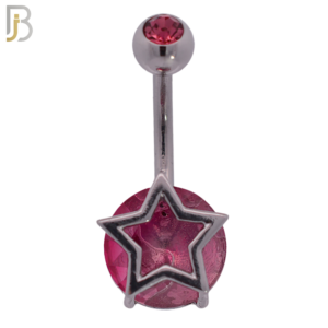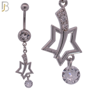 NB81 – 316L Stainless Steel Round Shaped CZ and Hollow Star Strap Frame Belly Ring