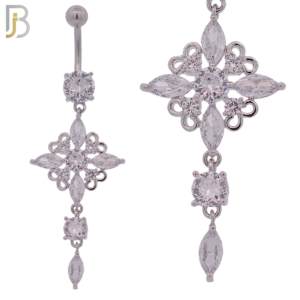 N0115 – 316L Stainless Steel Dangling Flower Lantern with Zircon Belly Ring and 5mm Screw Ball