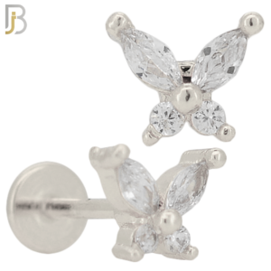 LB18 – 316L Surgical Steel 6mm Tragus / Cartilage Piercing Butterfly with Clear Cubic Zirconia (PACK OF 6)