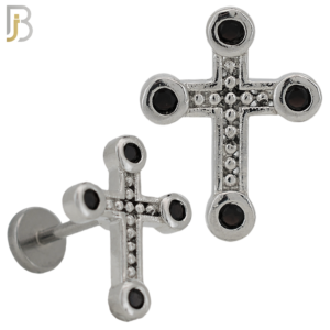 LB22 – 316L Surgical Steel 6mm Tragus / Cartilage Piercing Cross with Black Cubic Zirconia (PACK OF 6)