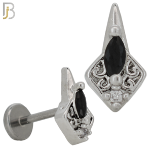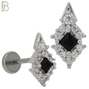 LB23 – 316L Surgical Steel 6mm Tragus / Cartilage Piercing with Diamond Shaped Black Cubic Zirconia (PACK OF 6)