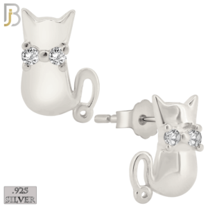 ES202 – Push Back – .925 Sterling Silver Cat Design Earring Stud with Clear Zircon