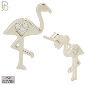 ES153 – .925 Sterling Silver Flamingo with Carved Heart Design with Zircon Design Earring Stud