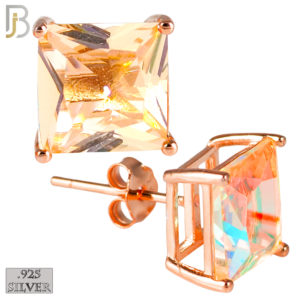 ES72-RR – .925 Sterling Silver Rose Gold Plated Earring Stud Casting Square Princess Cut Prong Setting Champagne Zircon