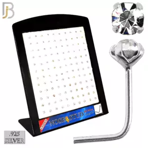 PK-NR10 – .925 Sterling Silver Nose Stud “L Shape” Press Fit Round Zircon Prong Setting
