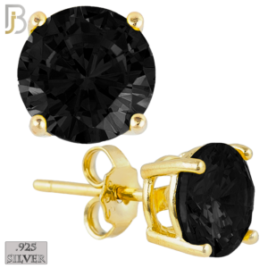 ES71-GK – .925 Sterling Silver Gold Plated Earring Stud Casting Round Prong Setting Black Zircon