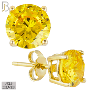 ES71-GY – .925 Sterling Silver Gold Plated Earring Stud Casting Round Prong Setting Canary Zircon