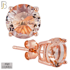 ES71-RR – .925 Sterling Silver Rose Gold Plated Earring Stud Casting Round Prong Setting Champagne Zircon