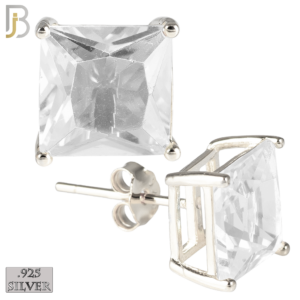 ES72-SC – .925 Sterling Silver Rhodium Plated Earring Stud Casting Square Princess Cut Prong Setting Clear Zircon