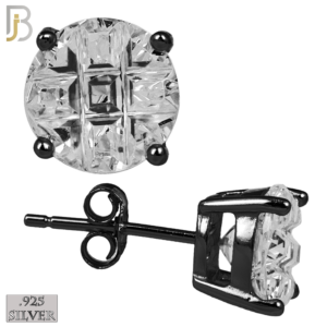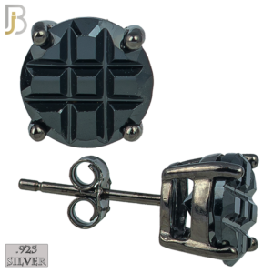 ES73-KK – .925 Sterling Silver Black Plated Earring Stud Casting Round Invisible Cut Prong Setting Black Zircon