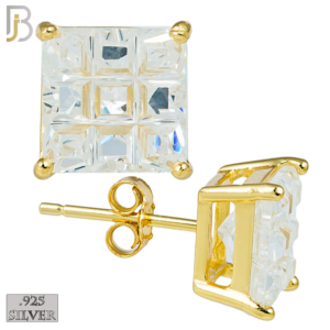 ES74-GC – .925 Sterling Silver Gold Plated Earring Stud Casting Square Princess Invisible Cut Prong Setting Clear Zircon