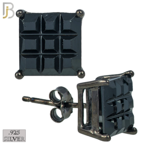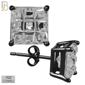 ES74-KK – .925 Sterling Silver Black Plated Earring Stud Casting Square Princess Invisible Cut Prong Setting Black Zircon