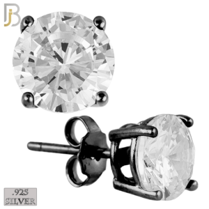 ES71-KC – .925 Sterling Silver Black Plated Earring Stud Casting Round Prong Setting Clear Zircon