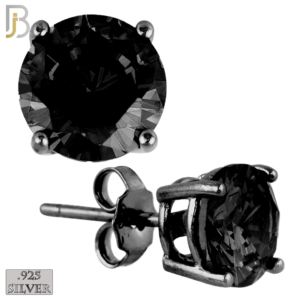 ES71-KK – .925 Sterling Silver Black Plated Earring Stud Casting Round Prong Setting Black Zircon