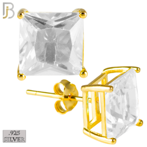 ES72-GC – .925 Sterling Silver Gold Plated Earring Stud Casting Square Princess Cut Prong Setting Clear Zircon