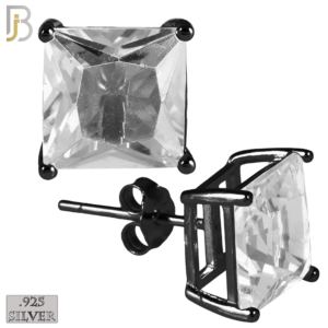 ES72-KK – .925 Sterling Silver Black Plated Earring Stud Casting Square Princess Cut Prong Setting Black Zircon