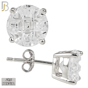 ES73-SC – .925 Sterling Silver Rhodium Plated Earring Stud Casting Round Invisible Cut Prong Setting Clear Zircon