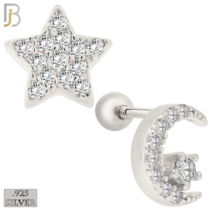 ES154 – Screw Ball Back – .925 Sterling Silver Crescent Moon and Star Design with Zircon Design Earring Stud