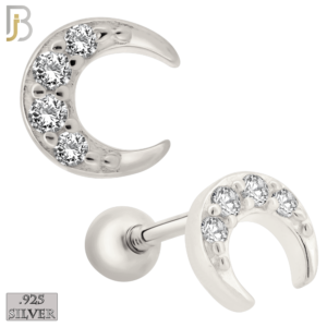 ES420 – Push Back – 925 Sterling Silver 5mm Moon with Multi CZ Stud Earrings