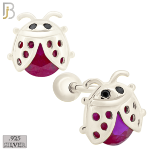 ES198 – Screw Ball Back – .925 Sterling Silver Lady Bug Design Earring Stud with Fuchsia Zircon