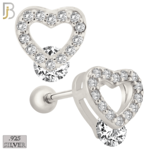 ES206 – Screw Ball Back – .925 Sterling Silver Heart Design Earring Stud with Clear Zircon