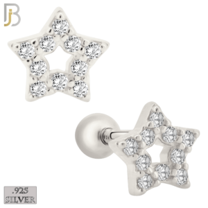ES212 – Screw Ball Back – .925 Sterling Silver Star Earring Stud with Clear Zircon Design