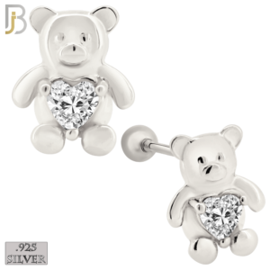ES371 – Screw Ball Back – .925 Sterling Silver Bear with Heart Shaped CZ Stud Earrings