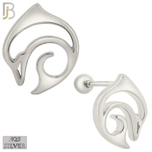 ES413 – Screw Ball Back – 925 Sterling Silver Plain Hollow Dolphin Curl Stud Earrings