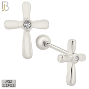 ES67 – Screw Ball Back – .925 Sterling Silver Cross Design Bezel Zircon Earring Stud