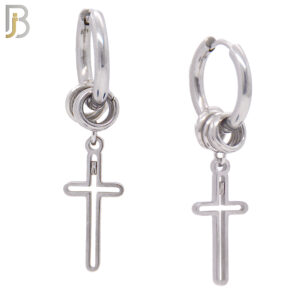 ES287 – 316L Stainless Steel Huggies with 5 Rings and Dangling Cross Clip On