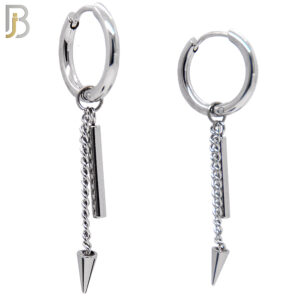 ES294 – 316L Stainless Steel Long Dangle Spike and Horizontal Bar Hoop Earrings