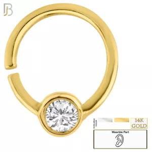 14-TH11 – 14K Solid Gold Single CZ in Bezel Setting Tragus Hoop